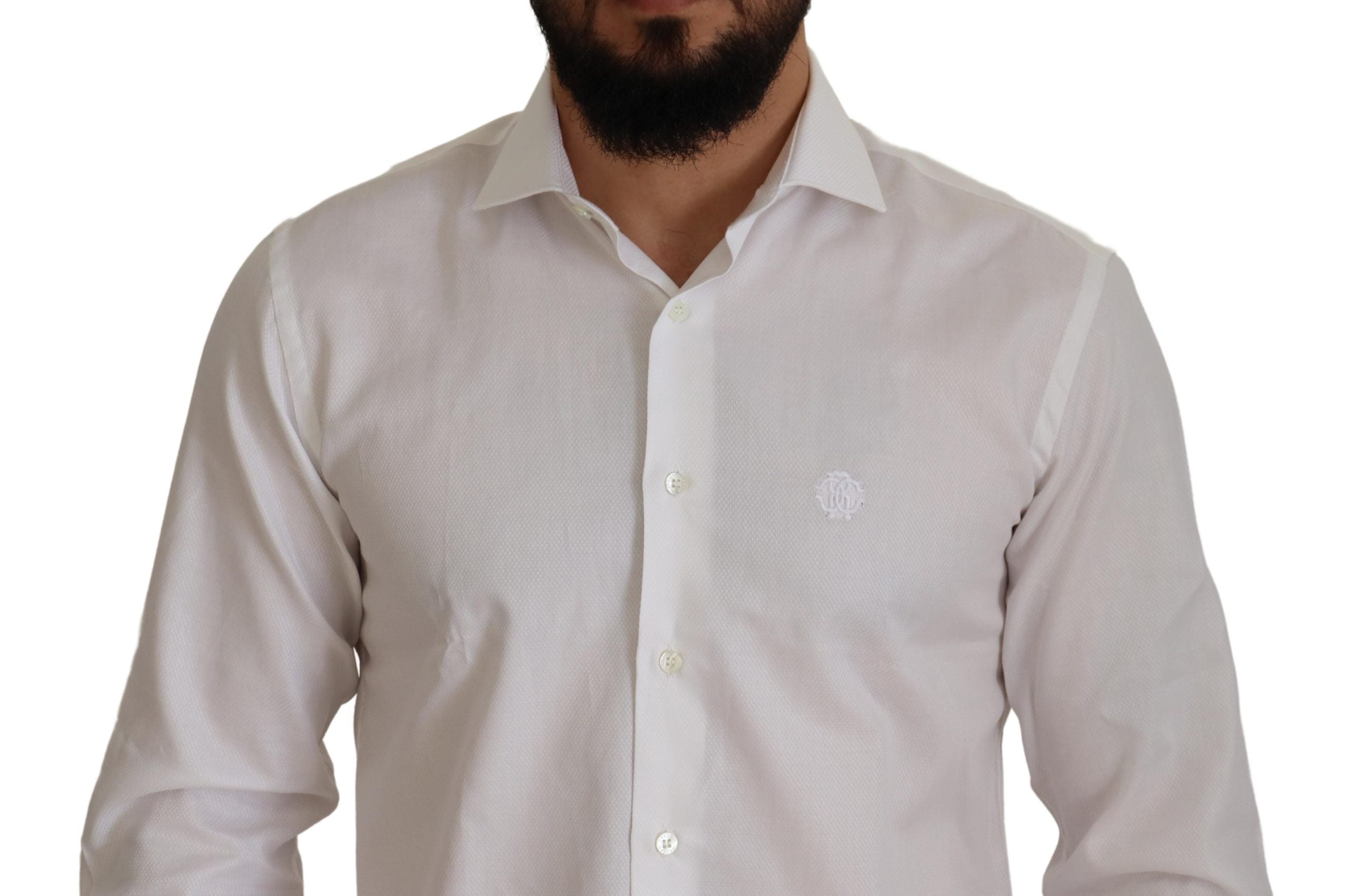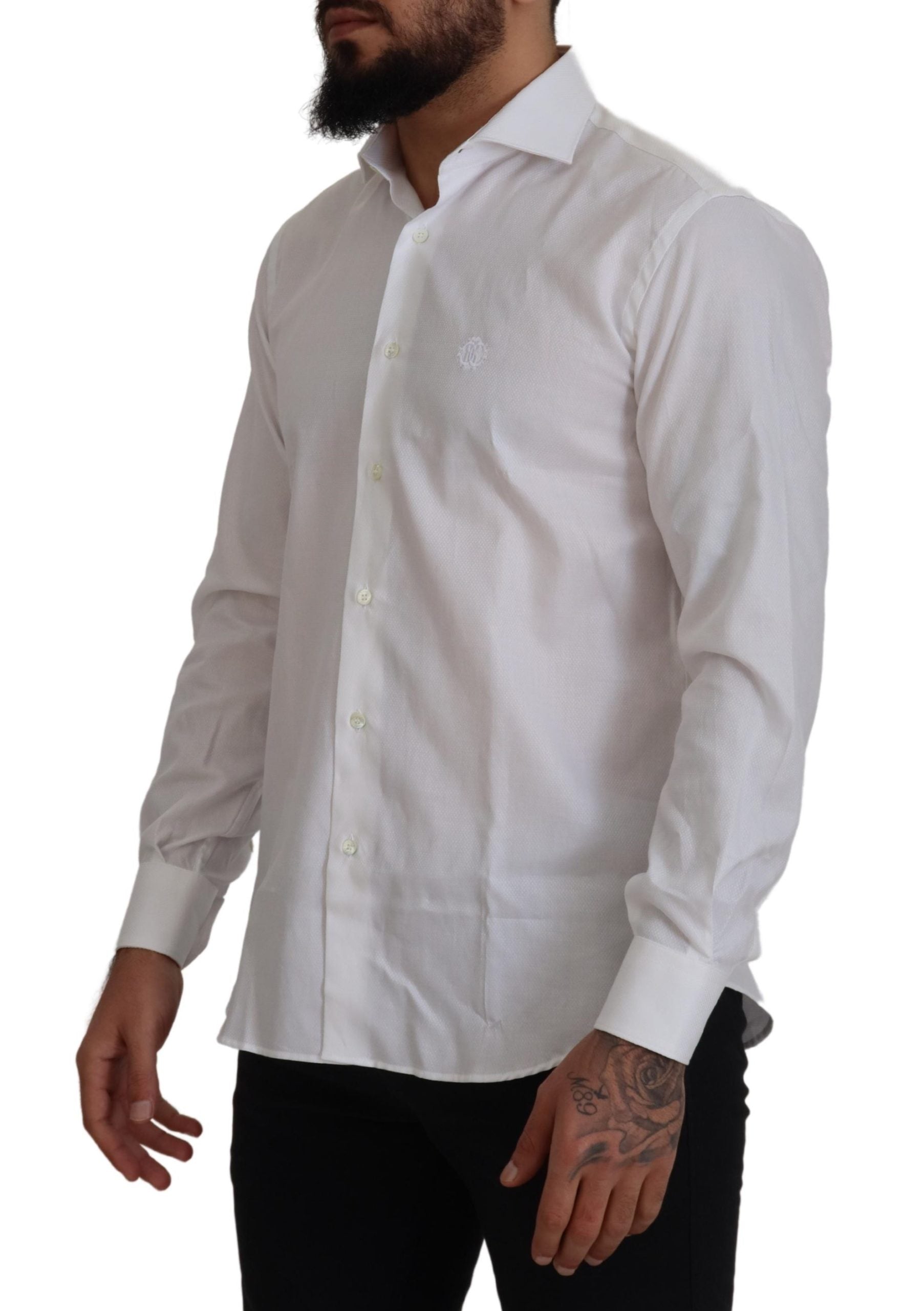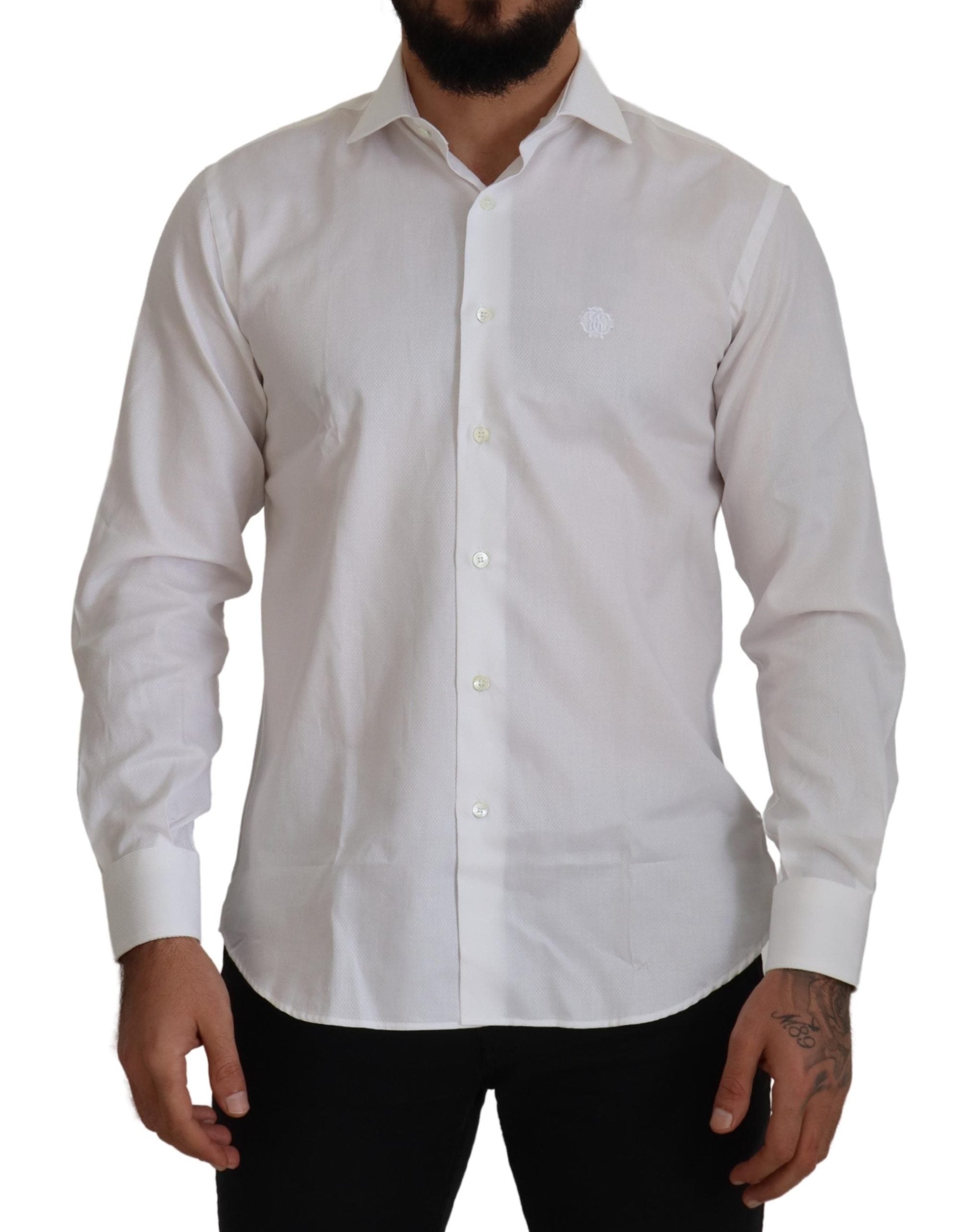 Roberto Cavalli White Cotton Formal Dress Slim Fit Shirt